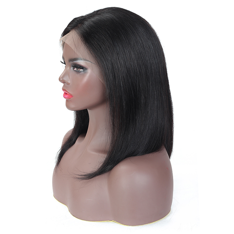 Letsfly-Peluca de cabello liso de 8-16 pulgadas para mujer, postizo de encaje, corte bob, 13x4
